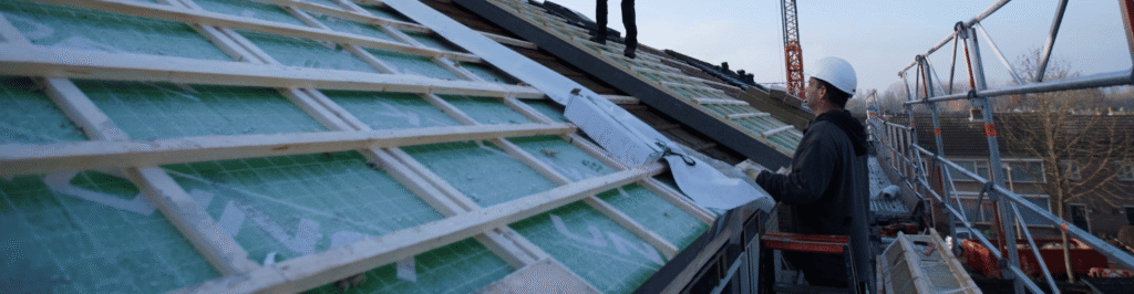 “Bij het renoveren van een dak komt veel kijken”, voegt Van Deinsen toe. “In de ontwerpfase hebben we naast zaken als flora en fauna te maken met brandveiligheid, omgevingsvergunningen en andere gemeentelijke procedures. In de uitvoeringsfase zijn we afhankelijk van de weersomstandigheden. Tegelijkertijd vormen de werkzaamheden aan het dak de rode draad in het uitvoeringsproces. Ligt ons werk stil door bijvoorbeeld harde wind, dan heeft dat consequenties voor de voortgang van het project. Daar moet je van tevoren goed met elkaar over nadenken en communiceren. Wat dat betreft hebben we aan Nijhuis Bouw een goede opdrachtgever en partner, die vooruit denkt en de processen strak onder controle heeft. Dat verdient een compliment.”
